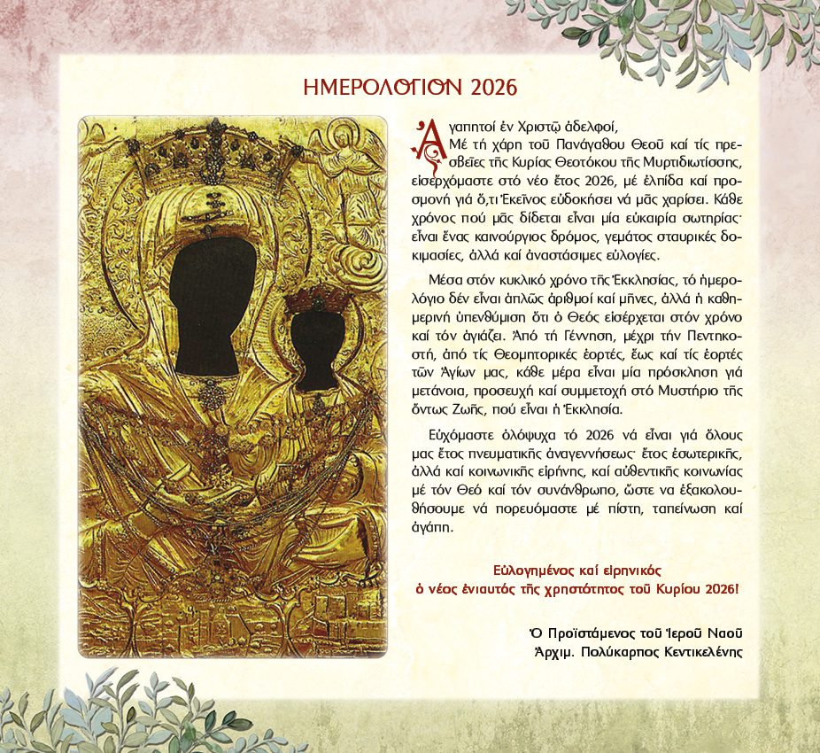 Κυκλοφορούν τα ημερολόγια του 2026 της Ενορίας μας, τα οποία μπορείτε να τα προμηθευτείτε από το Ναό μας.