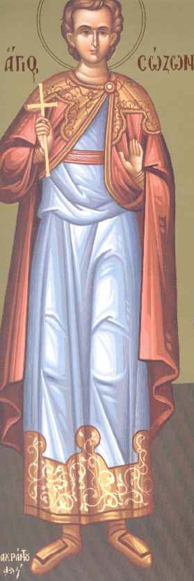 Ταχὺ προκατάλαβε σωθεὶς διὰ πίστεως, Σῴζων πολύαθλε, σωτήριος γέγονας, χειμαζομένων λιμήν, προνοίᾳ Χριστοῦ τοῦ Θεοῦ· βρύεις γὰρ ἰαμάτων, ποταμοὺς τοῖς ποθοῦσι, παύεις ἀρρωστημάτων, τὸν φλογμὸν καθ᾿ ἑκάστην· διὸ τὴν θείαν μνήμην σου, πίστει γεραίρομεν.